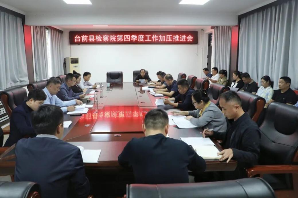 为进一步压紧压实工作责任,凝聚合力,确保高质量完成年度工作任务,10月16日,台前县检察院召开第四季度工作加压推进会,全面总结分析前三季度各项工作,谋划部署第四季度重点工作任务。院党组书记、代检察长王振涛出席会议并讲话,会议由院党组副书记孙一丹主持,班子成员、检委会专职委员、部门负责人参加会议。