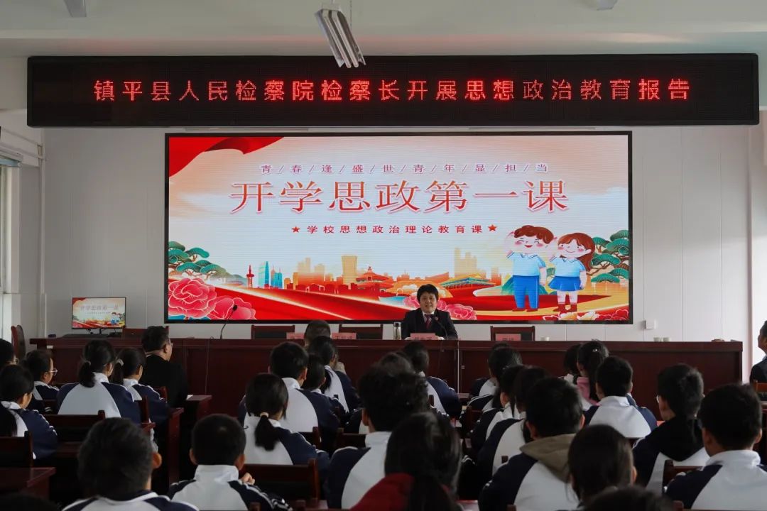为进一步增强未成年学生思想政治素质和遵纪守法意识,10月29日,河南省镇平县人民检察院党组书记、检察长蔡春源到该县第三完全学校集团东校区为同学们讲授思政课。
