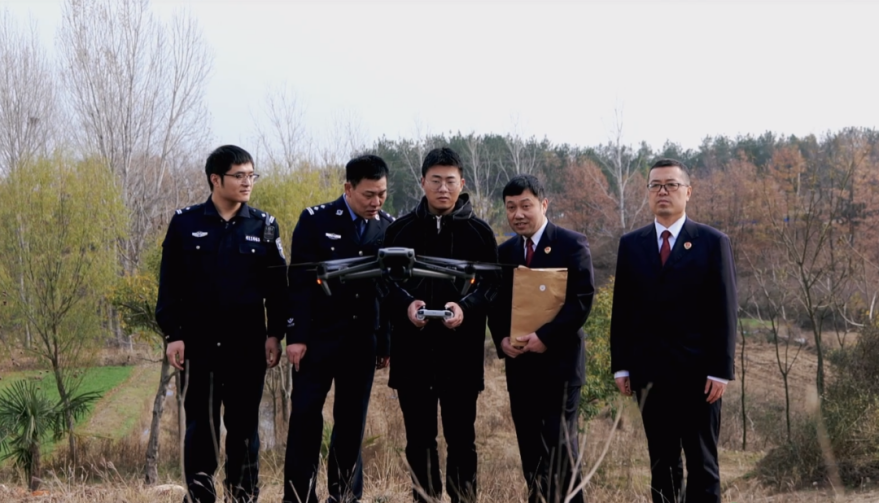 “使用无人机等新的勘查调查手段,可以在较短时间内发现案件重要线索,查明水源、土壤、大气污染和国土资源、环境、公共设施受损等情况,能够记录目标位置的准确信息,迅速完成航拍、录像、测绘计算和调取样品等取证工作,而且还可以节省大量的人力、物力和办案时间,极大地提高办案效率。”唐河县检察院副检察长何栓林说道。(图片/王丽莉 马潜)
