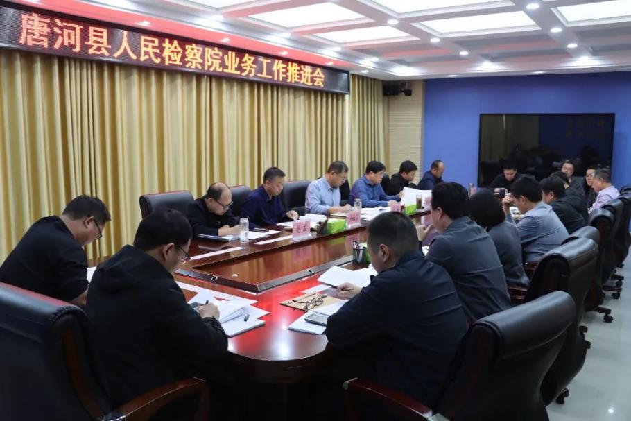 11月5日下午,唐河县检察院召开业务工作推进会,认真传达学习省检察院段文龙检察长在南阳调研时的讲话精神,进一步掌握全院工作开展情况,安排部署下一步工作重点。院党组书记、检察长王猛主持会议并讲话,全体党组成员和部门负责人参加。