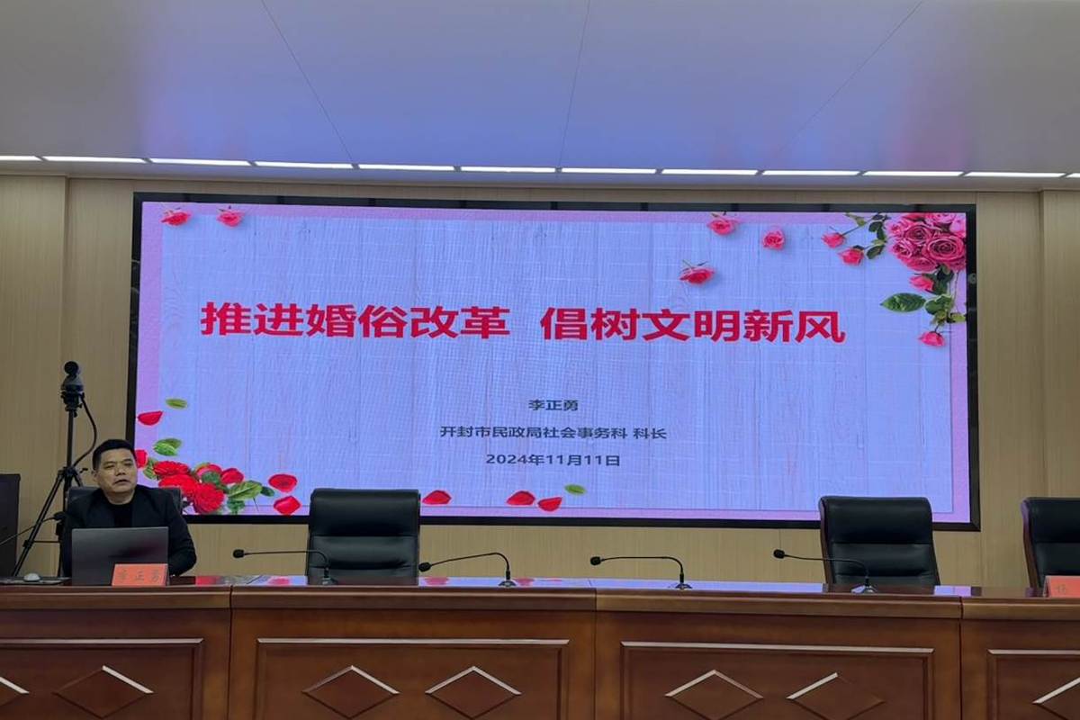 此次培训邀请了开封市民政局社会事务科科长李正勇授课,李科长以政策与实际相结合的形式,从婚姻家庭、婚俗改革、红娘作用的发挥等方面进行全面、深入的剖析培训和交流,倡树文明婚俗新风。