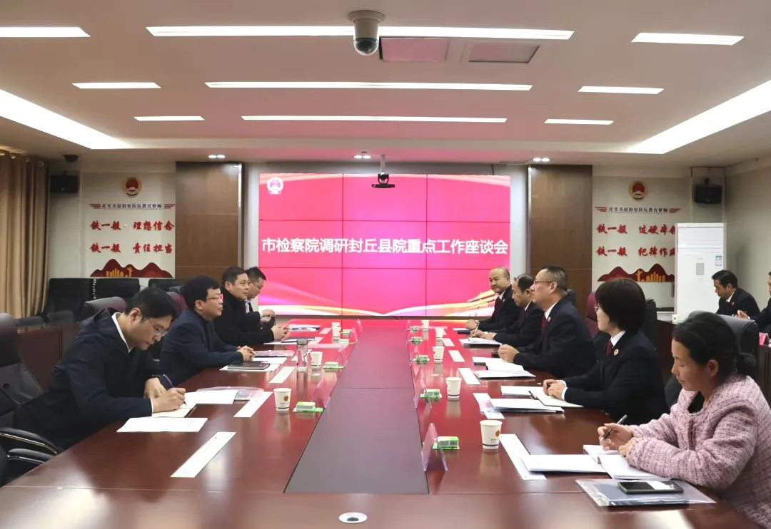 11月6日,新乡市人民检察院党组书记、检察长聂涛到封丘县深入企业调研“检察护企”专项行动开展情况,走访驻封市人大代表并征求其对检察工作的意见建议;到封丘县院宣讲党的二十届三中全会精神,听取重点工作汇报,并与该院班子成员、部门负责人召开座谈会,研讨会商如何更好一体抓实检察业务管理、案件管理、质量管理。