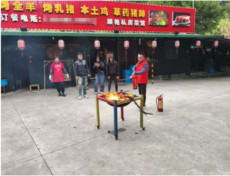 应消站工作人员向辖区群众发放消防宣传资料,并对照材料内容开展“面对面”消防安全知识技能答疑解惑,重点讲解火灾种类、扑救方法、灭火器使用及逃生自救技巧。随后组织场所负责人对灭火器进行实地操作演习,通过理论与实践相结合,增强群众安全意识与自救技能,锻炼其处理突发事件的能力。