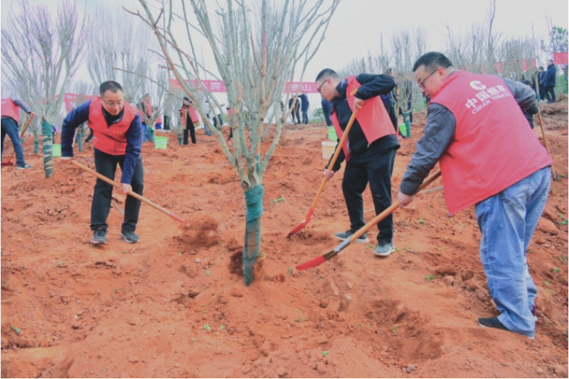 在植树活动现场,志愿者们身着统一的红色马甲,拿起铁锹、水桶,扶苗、填土、浇水、踩实……每道程序都一丝不苟、认真细致。志愿者们精神饱满、干劲十足、分工明确、配合默契,大家挥锹铲土、栽种苗木、施肥浇水、协作有序,好一派兴味盎然、热火朝天的劳动景象。
