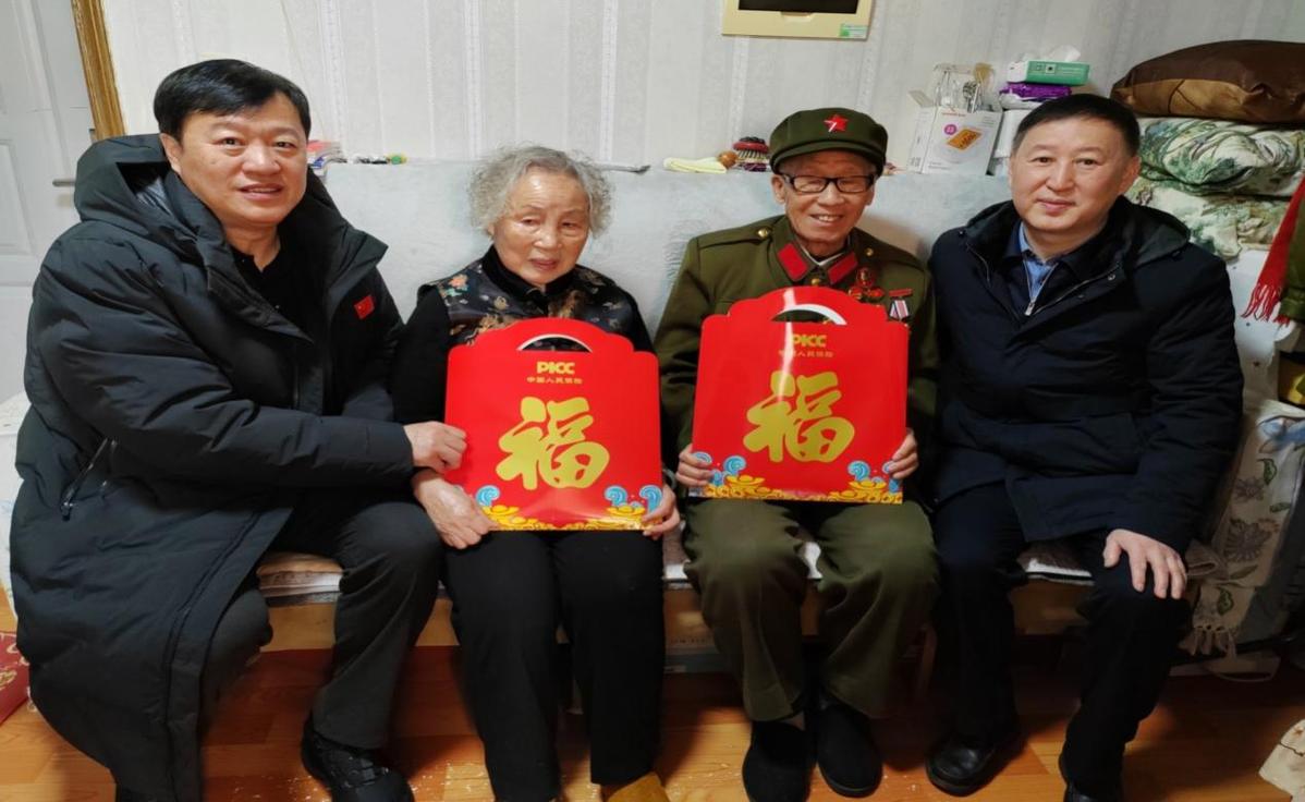 1月24日,辽宁分公司、沈阳中心支公司联合沈阳市退役军人事务局共同看望了分公司退役军人补充医疗保险理赔客户谭中强老人。辽宁分公司总经理姚宏伟与沈阳中心支公司总经理宁新成共同来到退役老军人谭中强家中,送去了中国人保新春对联,向谭老及家人表达到中国人保的新春问候,对谭老为国家所做的贡献表达了崇高敬意,同时提示老人和家人理性消费,防范风险。