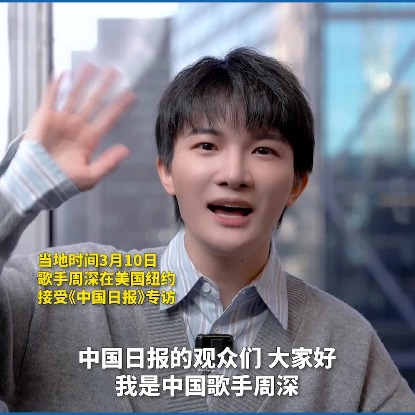 歌手周深美国巡演完美收官后,当地时间3月10日,周深在美国纽约接受《中国日报》专访时用英语向观众打招呼,他期待下次来美国时再为大家唱歌。(视频 董浩 张旻璐 李鸣妹)