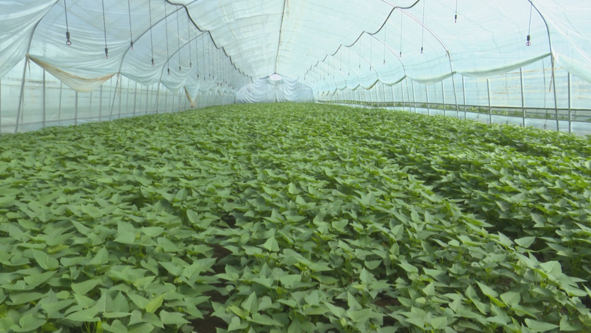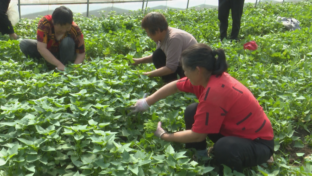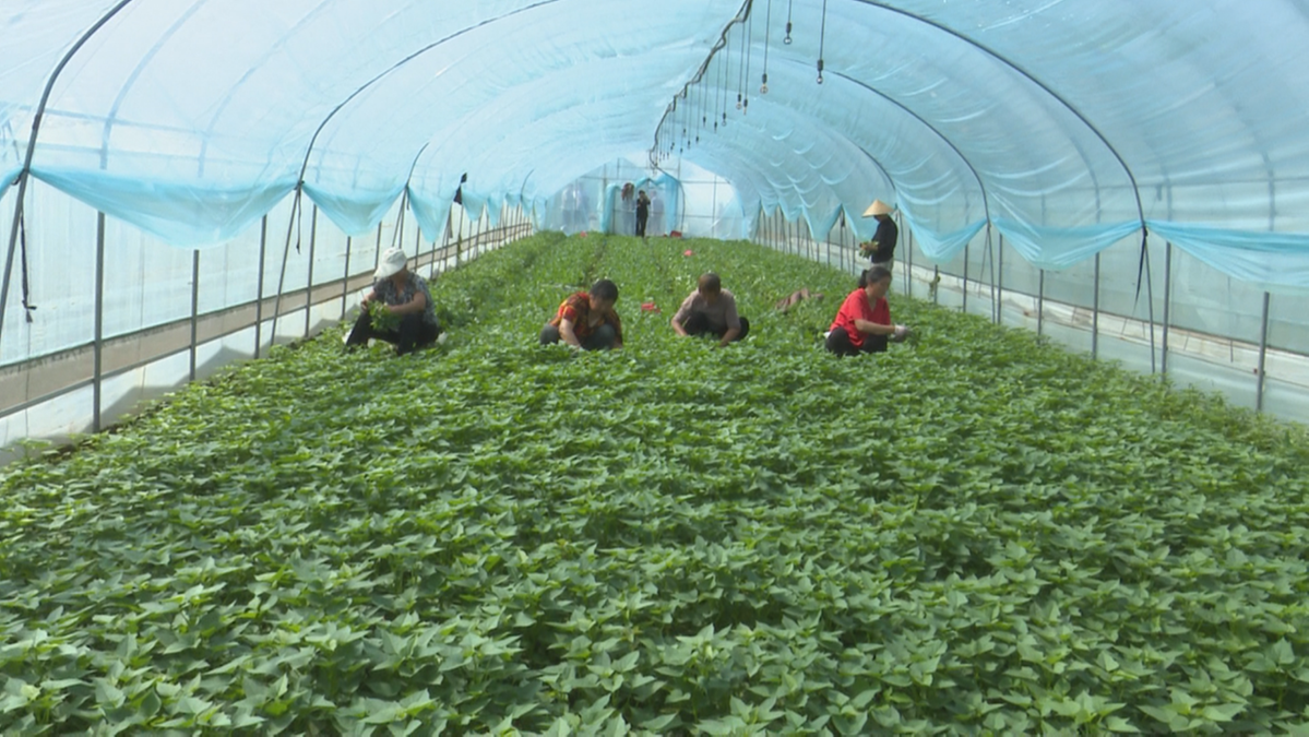 4月14日,镇平县安字营镇王洼村食用红薯叶种植基地大棚