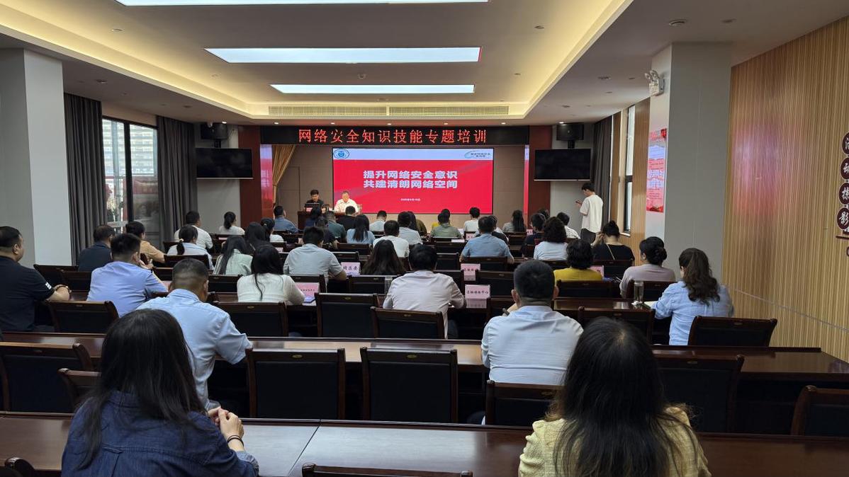 开幕式后,区委网信办组织开展网络安全知识讲座,邀请南阳师范学院王保平教授以《提升网络安全意识 共建清朗网络空间》为题,围绕当前网络安全形势研判、典型事件分析、法律法规梳理、策略推进等方面进行细致讲解,并就加强网络安全防护、提升个人网络安全意识给出指导建议。