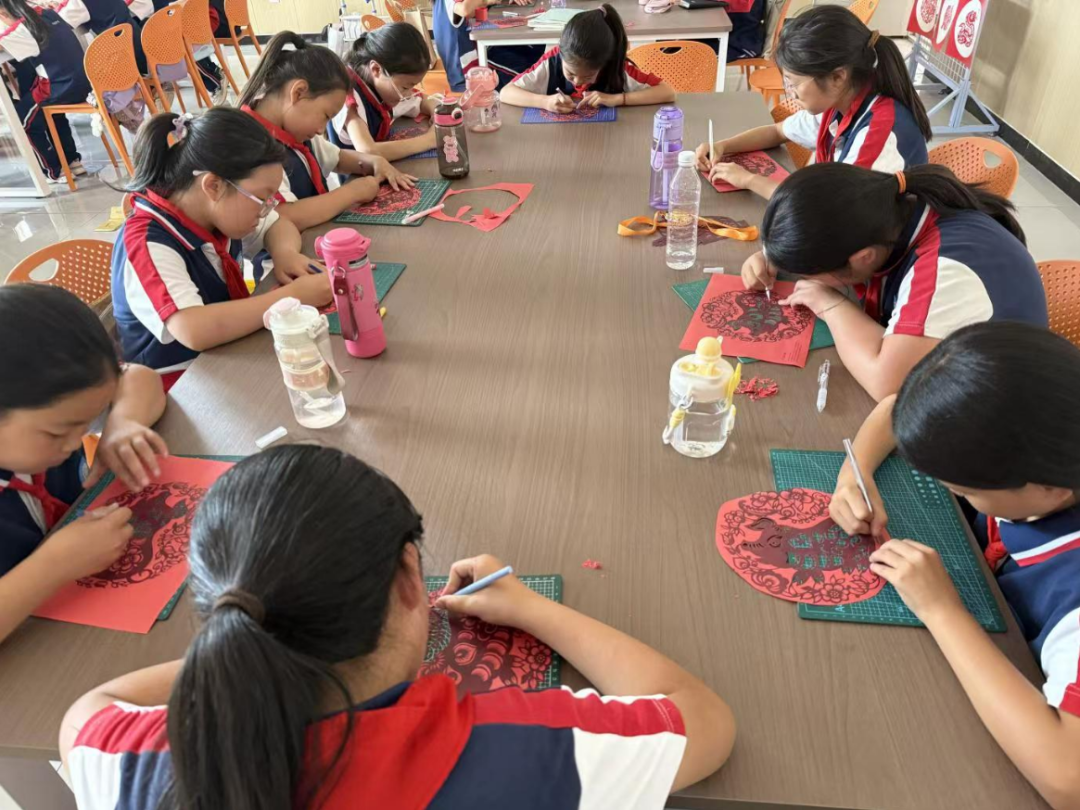 剪纸社团中,红纸在指尖流转成精美纹样,以巧思妙手传承非遗技艺,让中华文化的根脉在校园深植。一剪一贴间,传统与创意碰撞,既守护了文化瑰宝,又让少年在传承中厚植文化自信,让非遗之美在青春里熠熠生辉。