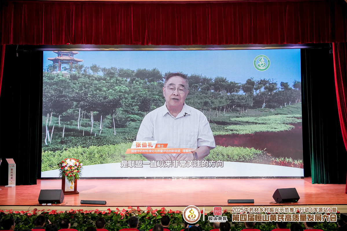 中国工程院院士、联盟理事长张伯礼通过视频发来致辞,为恒山黄芪产业发展提出几点关键建议,包括以科技赋能,推广规范化种植加工、打造溯源体系;以文化为魂,发掘道地药材文化内涵;畅通渠道,建立长效机制实现"种好、卖好、收益好"等,为恒山黄芪产业高质量发展提供了核心指引。