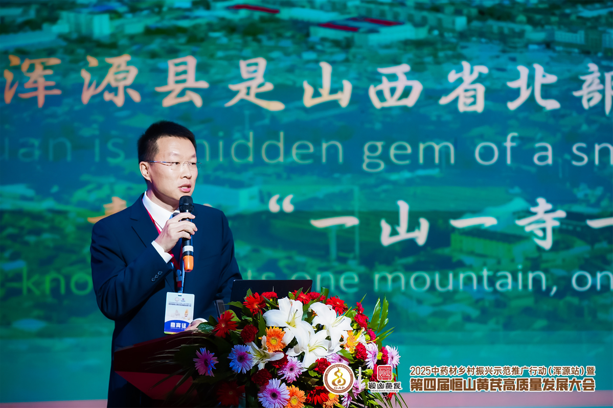 大会开幕式,浑源县委书记、政府县长赵昱清在致辞中亮出恒山黄芪产业"成绩单":全县宜芪面积达39.5万亩,有芪面积28.6万亩,年产2500吨,全产业链产值15亿元,直接带动5万余农户增收;恒山黄芪栽培系统入选"中国重要农业文化遗产""全球重要农业文化遗产预备名单",产品出口60多个国家和地区。他明确,浑源将围绕种源保护、标准制定、品牌建设持续发力,推动恒山黄芪向"百亿级产业"目标迈进。