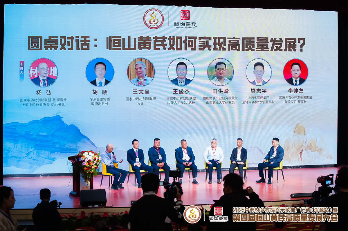 "恒山黄芪如何实现高质量发展?"——围绕这一核心议题,大会组织圆桌对话。山西省医药集团道地中药材公司董事长梁志宇提出,基于恒山黄芪生长环境特殊、质量优越、产量稀缺的特性,恒山黄芪应定位于"金字塔尖"的高端产品;浑源县农业开发投资集团董事长李帅友直言"劳动力断层"痛点——采挖黄芪日薪仅200元;浑源县委常委胡鹏回应,政府将设立"恒山黄芪产业发展基金",撬动社会资本投入深加工与品牌建设,同时推动"黄芪+文旅"融合,拓展产业链价值。