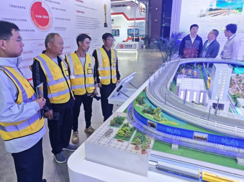 在智慧展示区,来自四川的信号工小王盯着智慧建造展示沙盘及智慧工地系统看了半天:“原来技术已经这么先进,就像看的电影大片里面一样。”