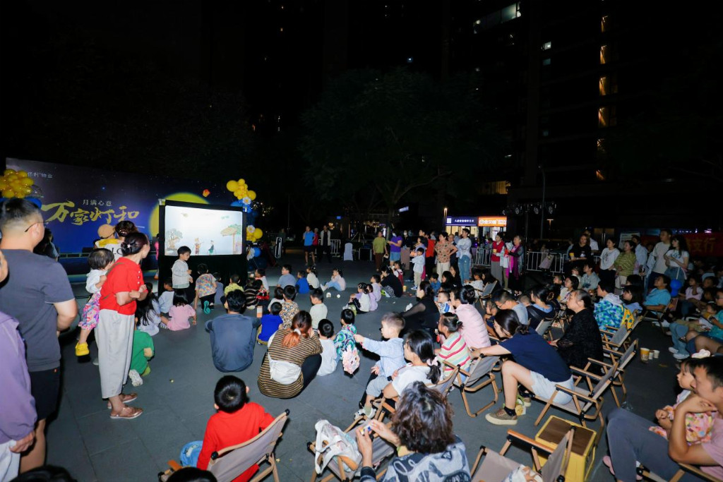 暮色初临时,各社区的“和市集”率先热闹起来。手工月饼摊位前,家长带着孩子揉面、包馅,将团圆的滋味封进酥皮;神奇泡泡秀格外热闹,漫天晶莹泡泡,孩子们追着“星光”般的泡泡奔跑嬉笑,定格这份中秋限定的快乐。非遗手工作坊里,业主们围坐一桌,手持竹篾、红纸,细致地裁剪、粘贴,亲手扎制出一盏盏形态各异的中秋花灯,彩色灯谜纸条悬挂在花灯下,引得老少业主驻足思索,构成最动人的中秋图景。