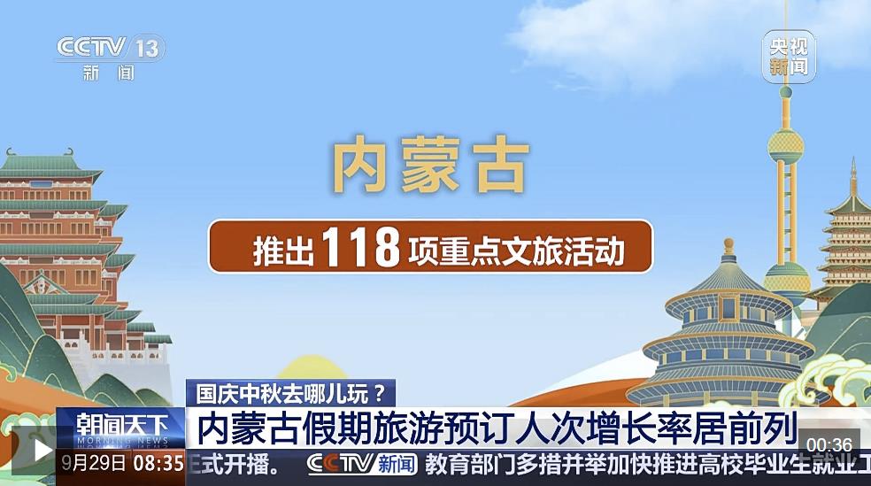 活动覆盖多元消费场景,既有民俗文化展演等传统文化体验项目,还包含赛马、徒步大赛、越野赛等动感赛事,更不乏灯光秀、音乐会、文艺演出等视听内容。数据显示,截至9月27日,内蒙古假期旅游预订人次增长率位居全国前列。