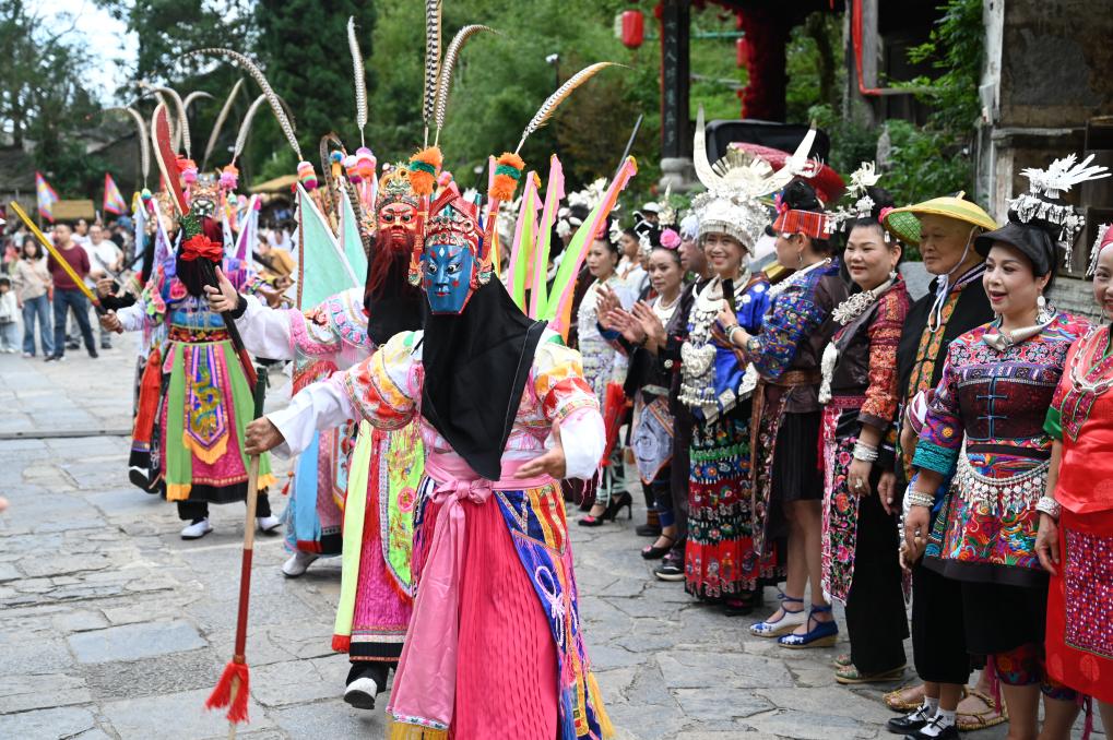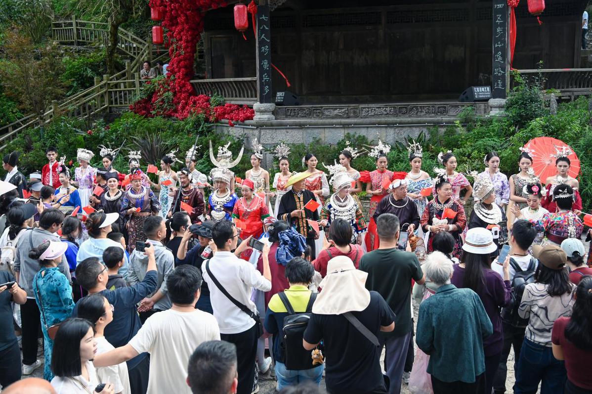国庆期间,云峰屯堡景区围绕“好吃、好住、好看、好潮、好玩”五大体验维度,推出了穿汉服免费游园、购景区门票享汉服体验、古乐器展演、“村T”进云峰等系列特色活动,为游客打造了一场沉浸式的明代文化盛宴,广受各界好评。(赵凯|编辑:中国日报社贵州记者站 杨军)