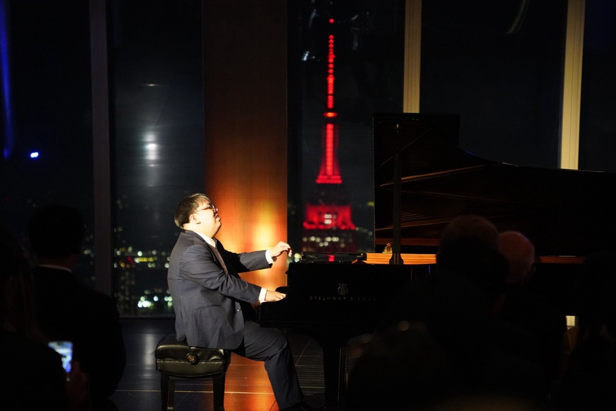 中国日报纽约10月7日电(记者李鸣妹)当地时间10月6日晚,中国驻纽约总领馆在纽约举办“听月雅集”中秋音乐会。纽约地区近百位嘉宾齐聚哈德逊广场Edge观景台101层,在高空室内外共赏明月、共庆中秋。