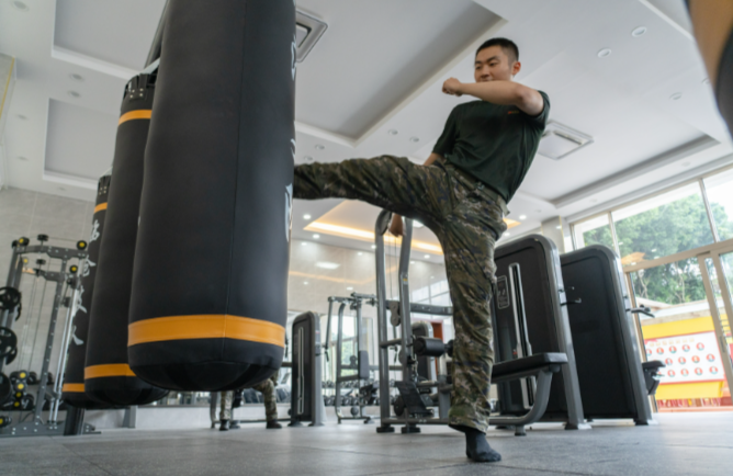 中队将打造体态的美作为培养阳光心态的第一步。在健身房内,跑步机、沙袋与力量器械有序陈列,官兵通过健身对抗日常焦虑,通过汗水与自己的内心达成和解,为身心注入阳光源泉。