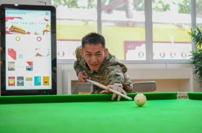 中队通过文体活动进一步释放心理压力,在新建的桌球室,战友在博弈间情深悄然凝结,在集体互动中淬炼抗压韧性,笑声与击掌汇成阳光心灵的养分。