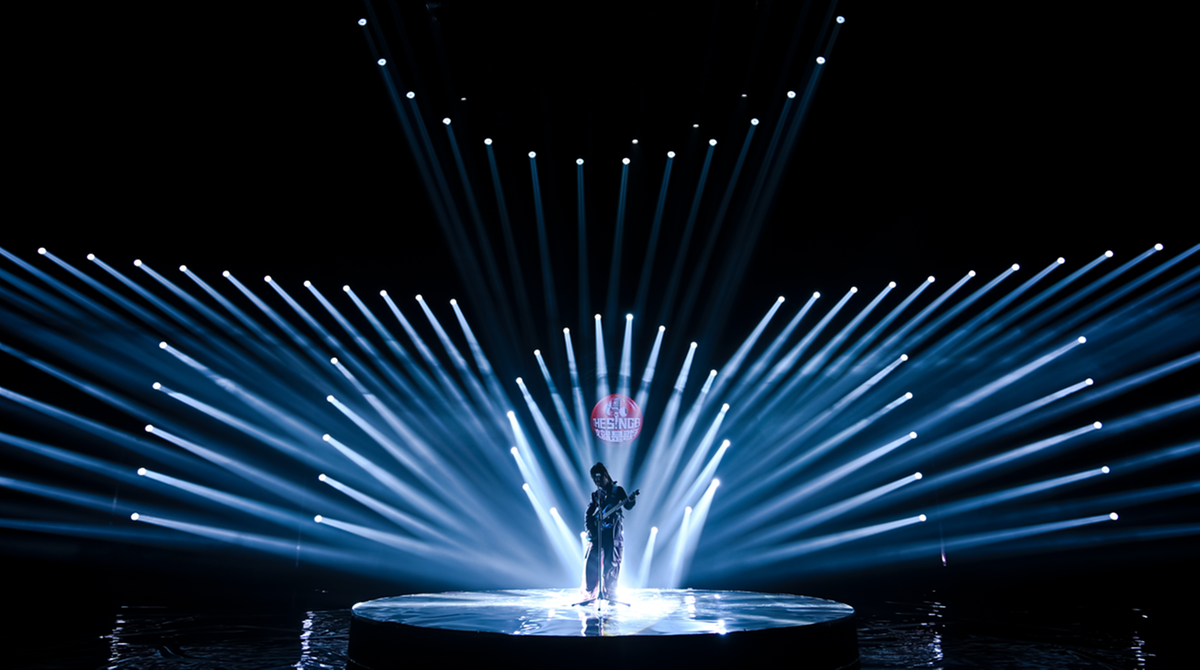 在精彩的演绎过程中,舞台光影矩阵与歌声共振,璀璨光影随旋律起伏变幻,强劲音效放大每一段弹唱的感染力,选手们的激情演唱与震撼舞台效果相得益彰,尤其在高潮段落,全场灯光骤亮如星河绽放,歌声穿透音效直抵人心,将比赛推向前所未有的热烈高潮。