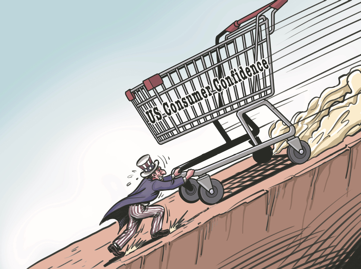 美国消费者信心指数创4月以来最低水平。(来源:中国日报 金鼎 英文《中国日报》2025年10月14日8版)