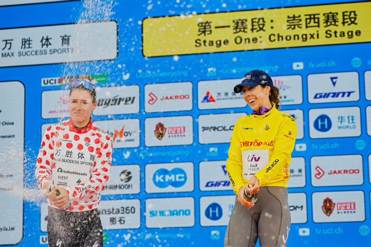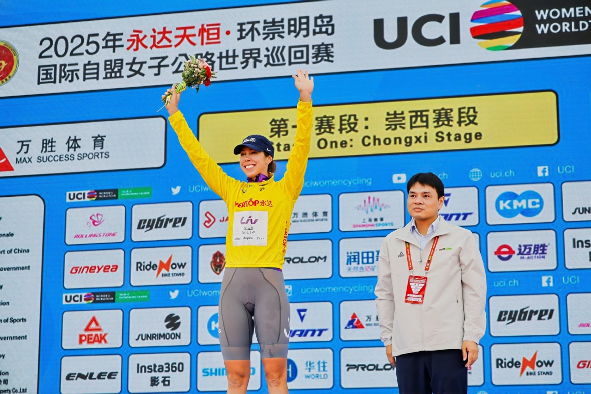 10月14日,2025年永达天恒·环崇明岛国际自盟女子公路世界巡回赛(以下简称“环崇明岛女子世巡赛”)在上海崇明这座世界级生态岛激情开赛。首日108.6公里的崇西赛段角逐中,来自丽芙-埃尔奥拉-杰科车队的乔治娅·贝克(Georgia BAKER)成为该日“争分夺秒”的最大赢家,——她不仅以2小时30分55秒一举夺得首赛段冠军,成功穿上象征个人总成绩领先的“黄衫”,同时还将代表冲刺最佳的绿衫一并收入囊中。