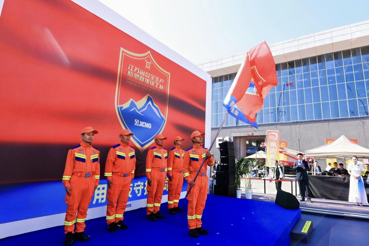 作为行业领军企业,徐工始终与国家战略同频共振。依托全系列工程机械、应急救援装备及数字化云平台,为助力国家公共安全体系建设、提升重特大灾害响应能力,徐工于今年7月正式成立“徐工专业应急救援队”。在成立不到三个月的时间内,已先后参与北京洪涝灾害、甘肃泥石流、内蒙古暴雨灾害救援行动,获得社会各界高度认可。展会现场,徐工专业应急救援队庄严亮相,并为北京密云洪涝灾害救援“铲车侠”颁发“荣誉队长”聘书,充分彰显徐工作为行业领军企业带动产业链,共同履行社会责任的担当与浩气。