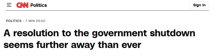 众议院议长共和党人迈克·约翰逊预测,此次停摆可能成为美国史上持续时间最长的一次。他在国会大厦前表示,在民主党暂停医疗保健要求并重启政府之前,他不会进行谈判。由于众议院已休会且约翰逊拒绝召回议员,而参议院又陷入投票僵局,僵局破解的前景黯淡。