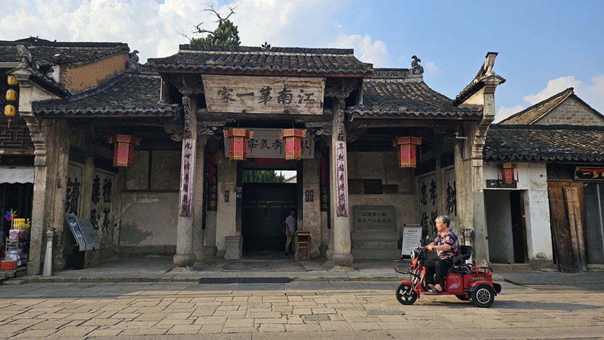 10月13日,当地居民驾驶电动车经过郑义门古建筑群。中国日报记者 耿菲菲 摄