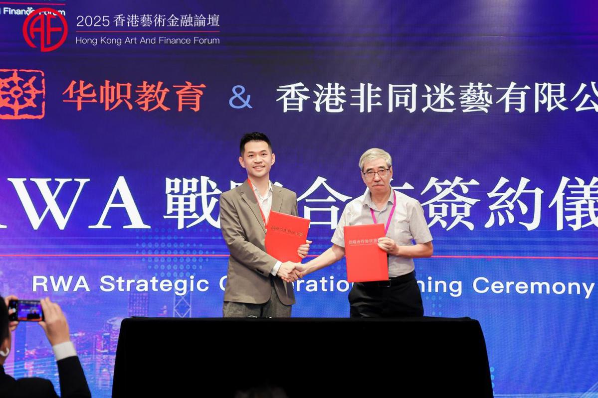 此次签约仪式由华帜集团代表吴若雄先生与香港非同迷艺有限公司总裁杨挚先生共同完成。双方将携手推动教育培训、艺术资产与数字化金融的深度结合,探索文化教育资产上链、艺术教育版权确权及数字认证新模式。