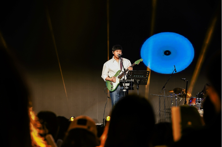 这场持续3.5小时的音乐派对上,来自复旦大学、同济大学、上海音乐学院、上海大学、上海应用技术大学等大学的校园歌手和乐队轮番登场。来到这个舞台,他们更视作是思想与情感自由流动的场域,“我们非常珍视这种同龄人之间通过音乐建立的无形纽带,也感受到校园文化所特有的开放、包容与活力。在这样的氛围中演出,更像是一次集体情感的共融,令人难忘。”