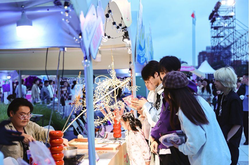 当日下午的美妆潮玩生活派集藏着穿越千年的“时辰奇遇记”,以“未、申、酉、戌”4个古韵时辰为线索,串联美妆颜究所、潮玩造物局、美食补给站、露营松弛区等四大区块,结合趣味任务与终极挑战,打造沉浸式“闯关+解压”双重体验。另外更有文化与潮流的惊喜联动,以奉贤锦带纹样为灵感,融入国潮“谷子”设计,将纹样里的吉祥寓意藏进吧唧、冰箱贴、贴纸等随身小物里,让传统美学玩转生活。主办方透露,未来将继续探索音乐节结合青年生活方式的新模式,持续激活青春经济与区域发展的深度融合。(图片由王松提供)