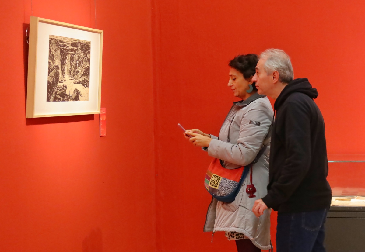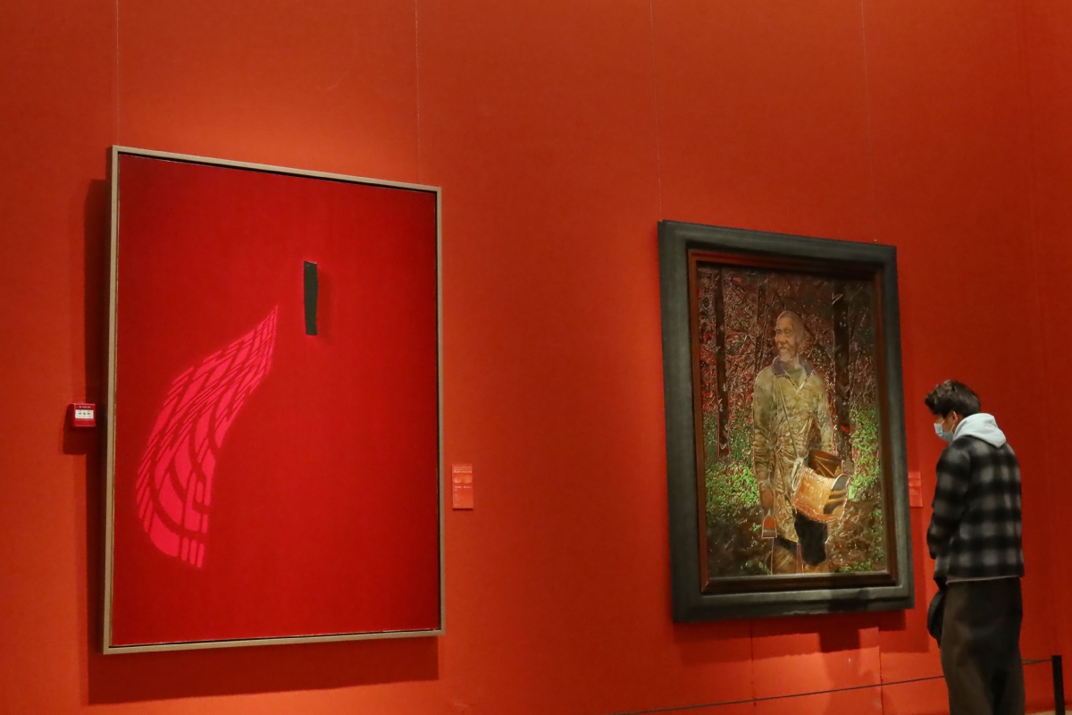中国日报10月21日电(记者 姜东)2025年10月21日,观众在位于北京的中国美术馆参观“扎根人民60年——湖北省美术院艺术展”。