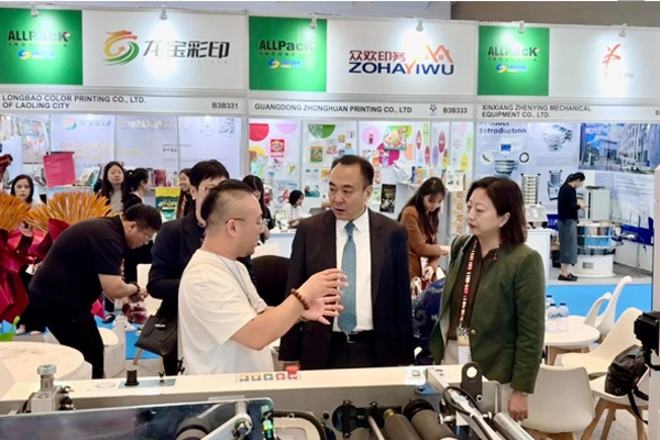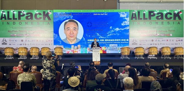 由商务部主办、外贸发展局承办的中国国际包装、印刷、塑料机械及零配件(印尼)展于2025年10月21日在印度尼西亚雅加达开幕。展会与2025年印尼包装、印刷、塑料机械展(All pack Indonesia)同期举办,外贸发展局局长刘殿勋、中国驻印尼使馆经商处公使衔参赞李洪伟、印尼工业部下游化工与制药工业司司长索帕尔・哈洛莫安・西拉伊特、印尼食品饮料工业协会主席阿迪・卢克曼、克丽斯塔展览公司首席执行官达乌德・萨利姆等嘉宾出席了展会开幕式,刘殿勋局长代表中方致辞。开幕式结束后,中外嘉宾共同巡视展馆并与参展企业沟通交流。