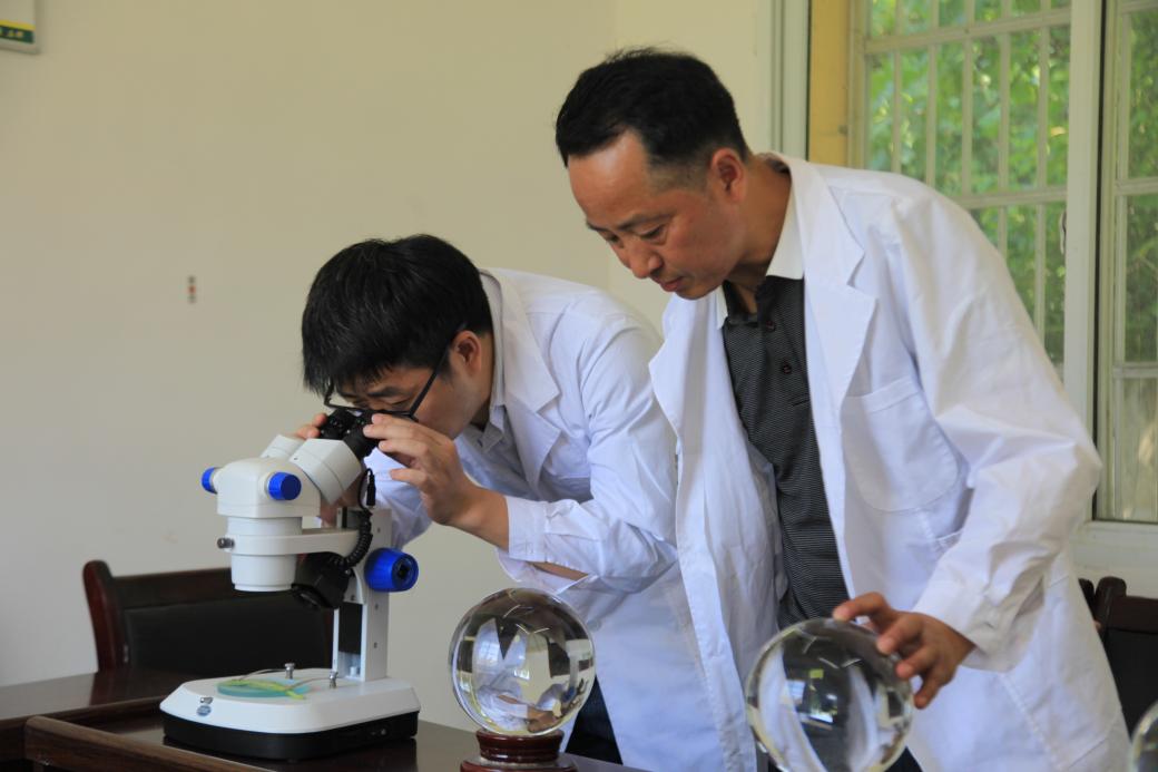 图为宋光龙及其工匠室成员利用放大镜查看虫态