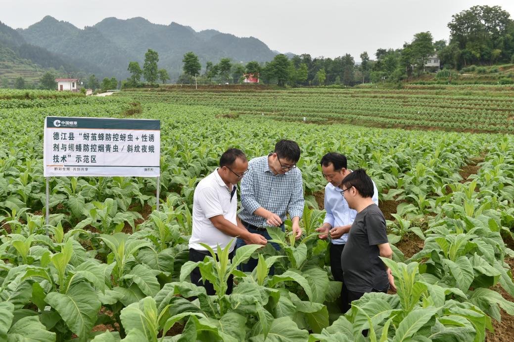 图为宋光龙烟叶植保工匠室成员在田间教学