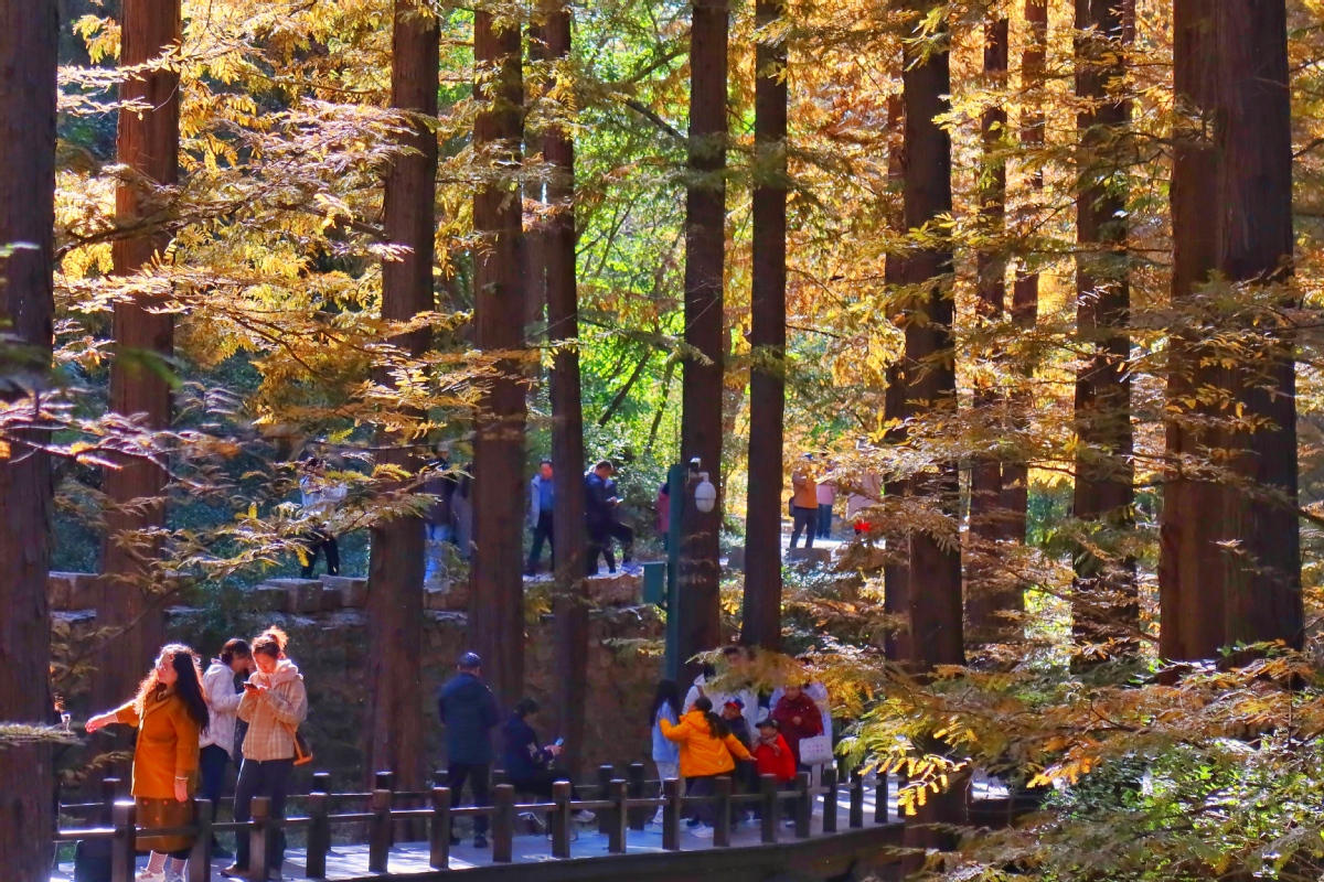 10月26日,人们在位于北京的国家植物园(北园)赏秋。中国日报记者 姜东 摄