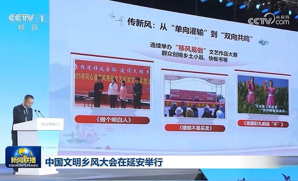 10月29日至30日,中国文明乡风大会在革命圣地延安举行。宁夏同心县委书记陈华作为全国县级党组织唯一代表,在大会上作了经验交流发言,向全国生动展示了同心县整治高额彩礼、推进移风易俗的“同心路径”与显著成效。