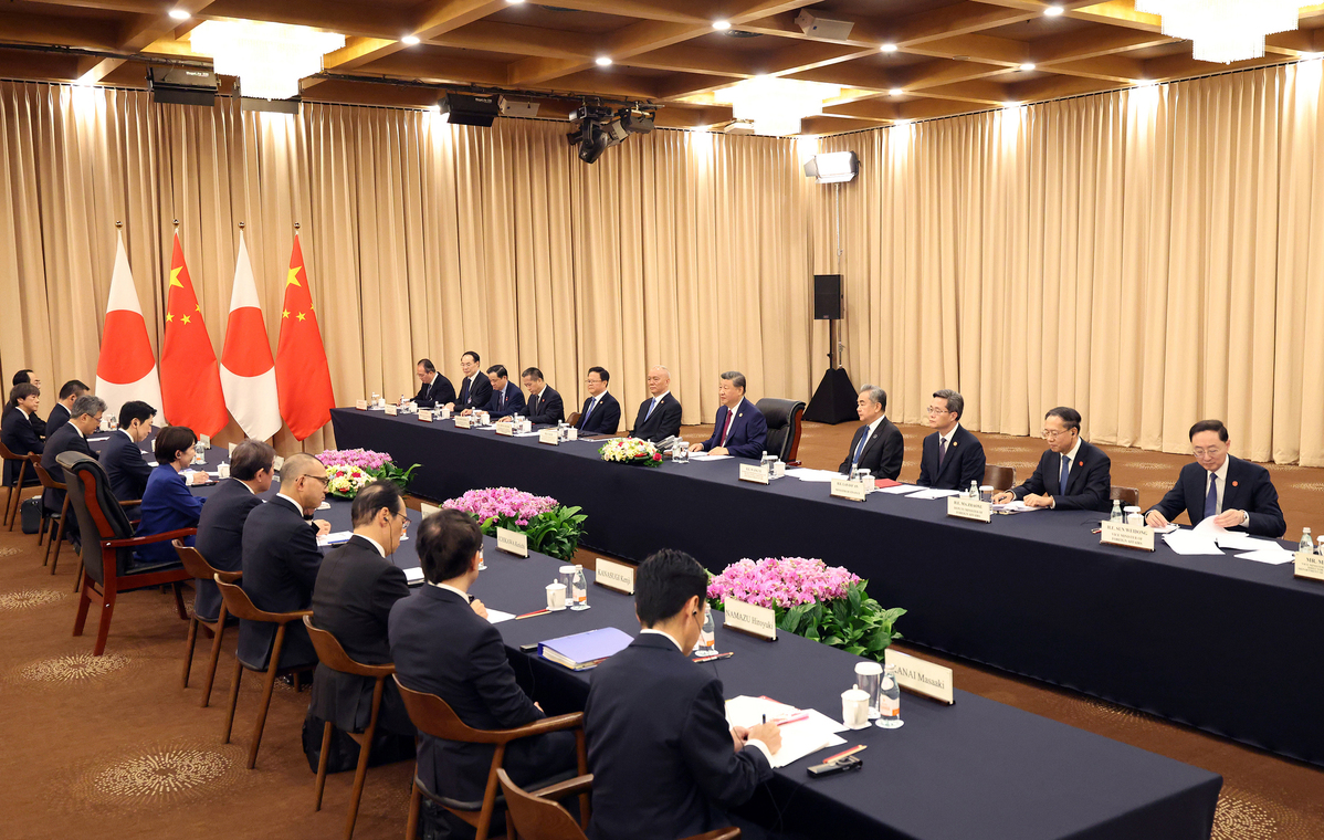 当地时间10月31日下午,国家主席习近平在韩国庆州出席亚太经合组织第三十二次领导人非正式会议期间会见日本首相高市早苗。中国日报记者 冯永斌 摄