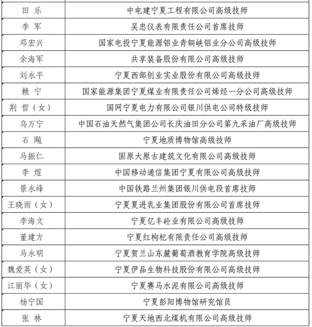 本次全区塞上工匠推荐培育活动中,另有26人被认定为塞上工匠培育对象。塞上工匠纷纷表示,将勇担技术引领者和精神传播者双重使命,积极参与技术攻关与技艺传承,广泛开展“师带徒”“传帮带”活动,走进企业、校园和基层,讲好工匠故事,弘扬劳模精神、劳动精神、工匠精神,在全社会营造尊重劳动、崇尚技能、鼓励创造的浓厚氛围。(中国日报宁夏记者站 胡冬梅)