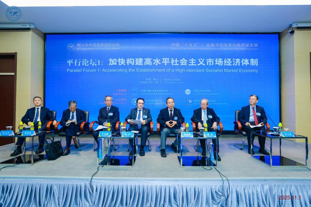 2025年11月1-2日,由中国(海南)改革发展研究院、中国公共外交协会联合主办的“中国‘十五五’:全面深化改革与高质量发展——第91次中国改革国际论坛”在海南海口召开。本次论坛以二十届四中全会精神为指导,围绕全面深化改革与高质量发展研究研讨,建言献策。来自22个国家和国际组织,全国31个省、直辖市、自治区及香港特别行政区的政府、智库、高校、媒体、企业等400余位代表参加本次论坛。
