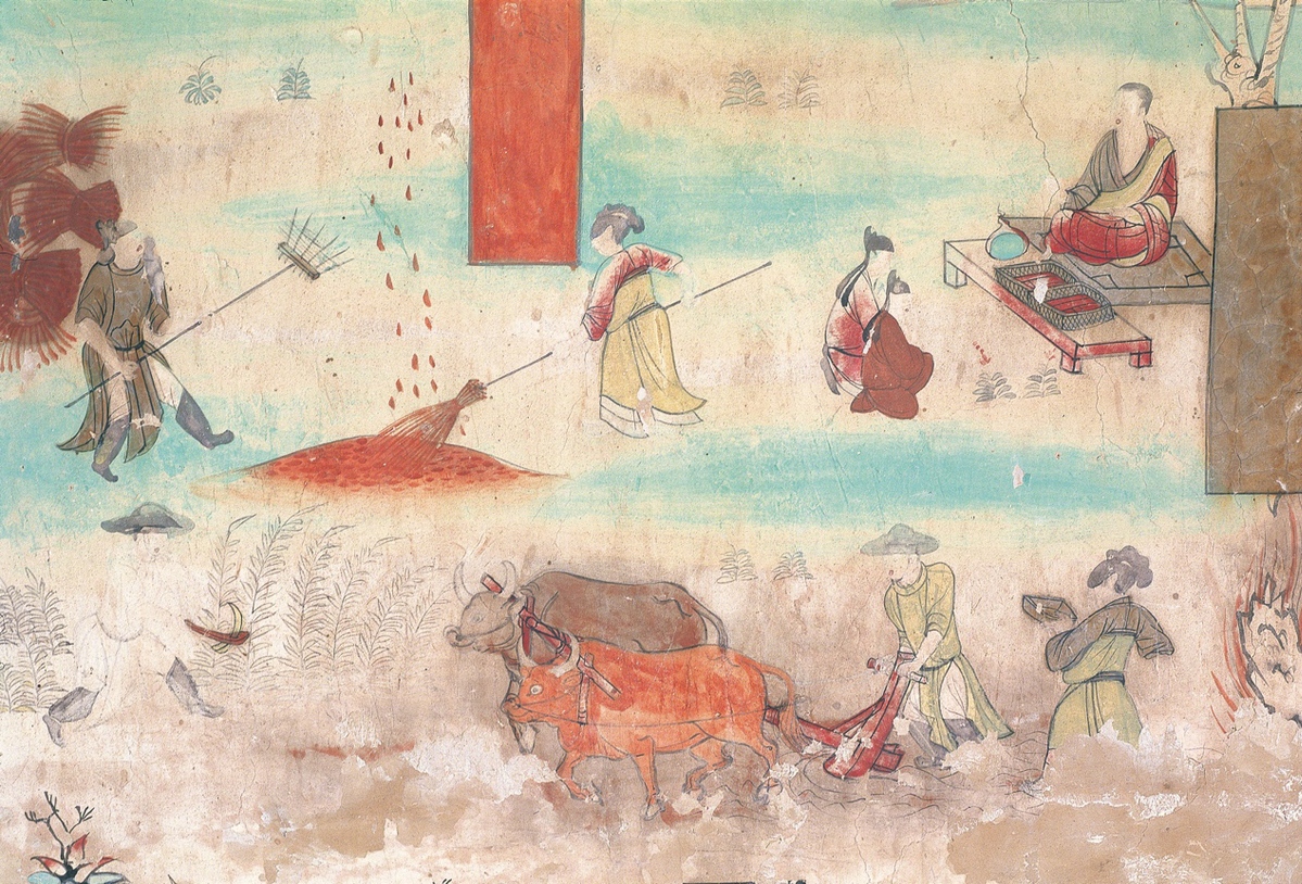 壁画中从穿搭、农耕到生活细节,都藏着穿越千年仍不过时的巧思。榆林石窟壁画的“潮流感”,本质是古代生活美学与实用智慧的超前表达。无论是供养人的襦裙、武士的短打,还是飞天的飘带装,没有冗余装饰,类似如今的“极简风”。 用石青、石绿、朱砂等天然矿物颜料上色,以低饱和撞色(如青配白、红配褐)为主,不浮夸不刺眼,契合当下“莫兰迪色系”“中国传统色”的审美潮流。