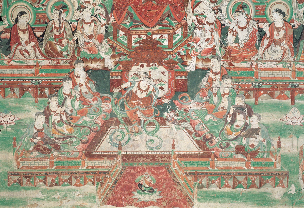 中唐第 25 窟的《弥勒经变》,以绚丽色彩与严谨构图延续盛唐艺术风骨。
