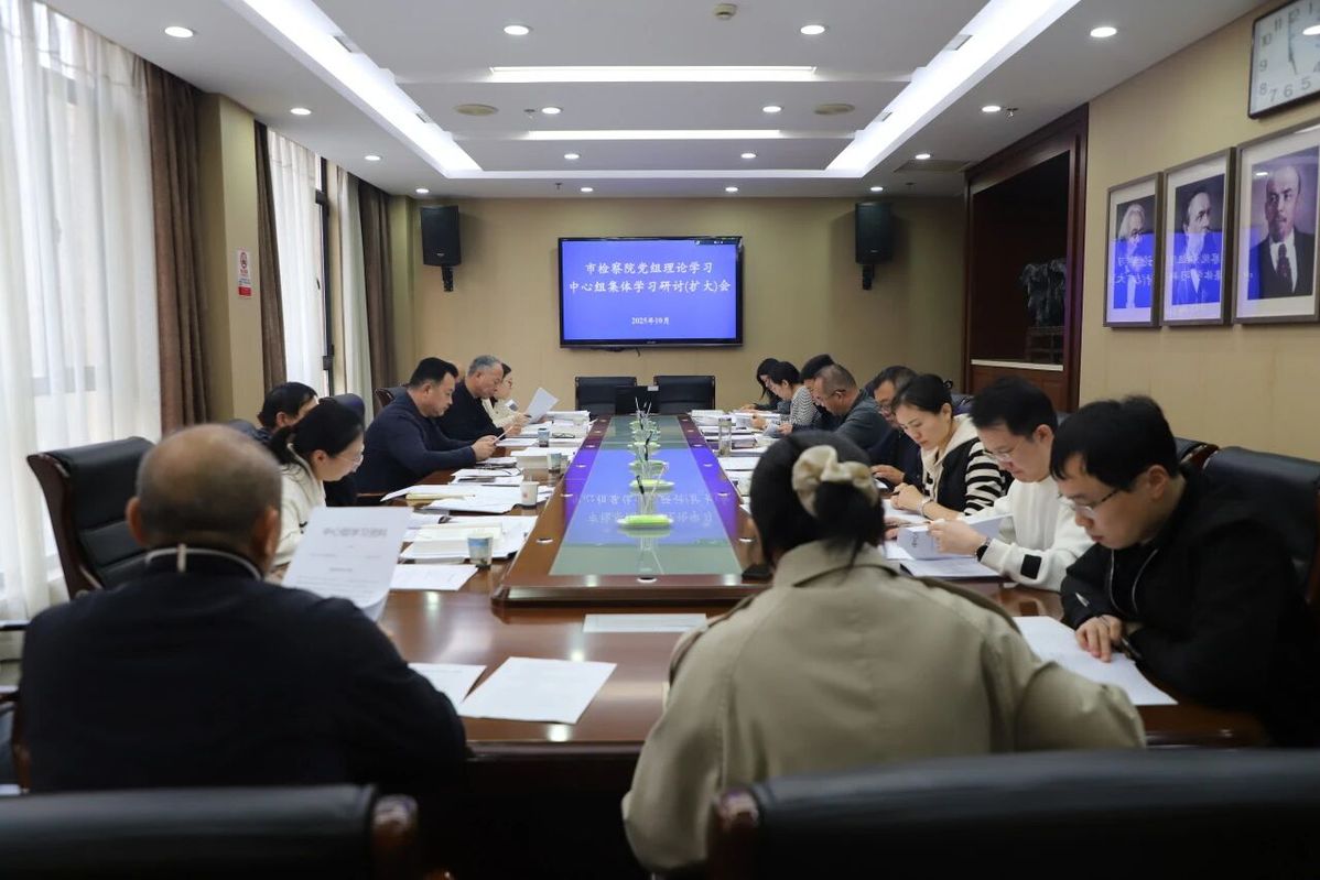 10月27日,巩义市人民检察院召开党组理论学习中心组集体学习研讨(扩大)会,传达学习党的二十届四中全会精神,研究贯彻落实举措。院党组书记、检察长黄德清主持会议,班子成员、各部门负责人参加会议。