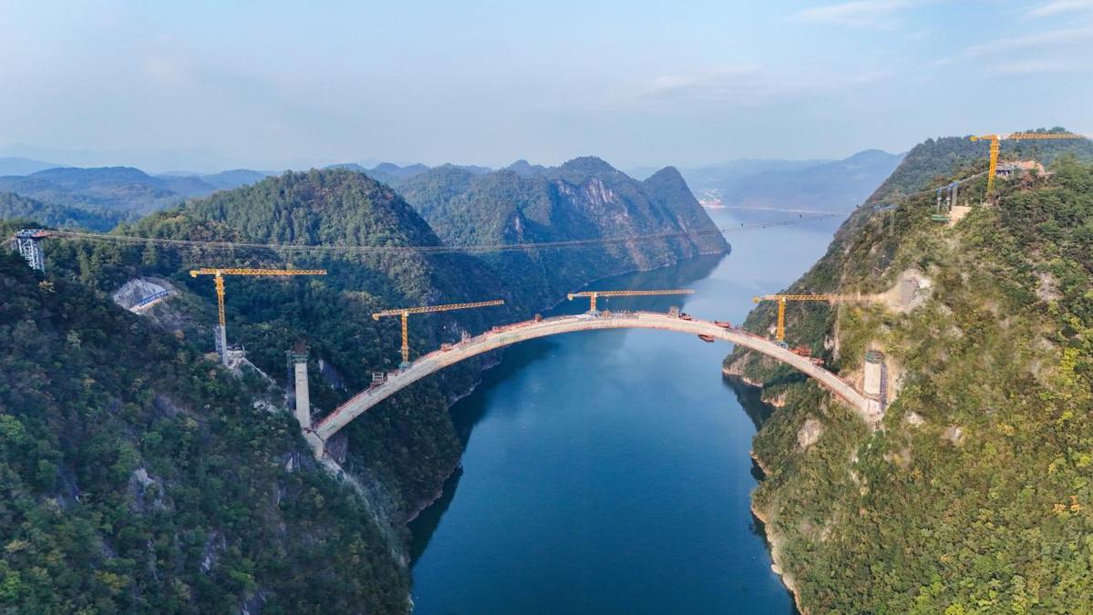 近日,随着最后一方C55混凝土精准注入拱顶合龙口,中交路建瓮马铁路项目乌江特大桥拱圈外包混凝土顺利合龙。