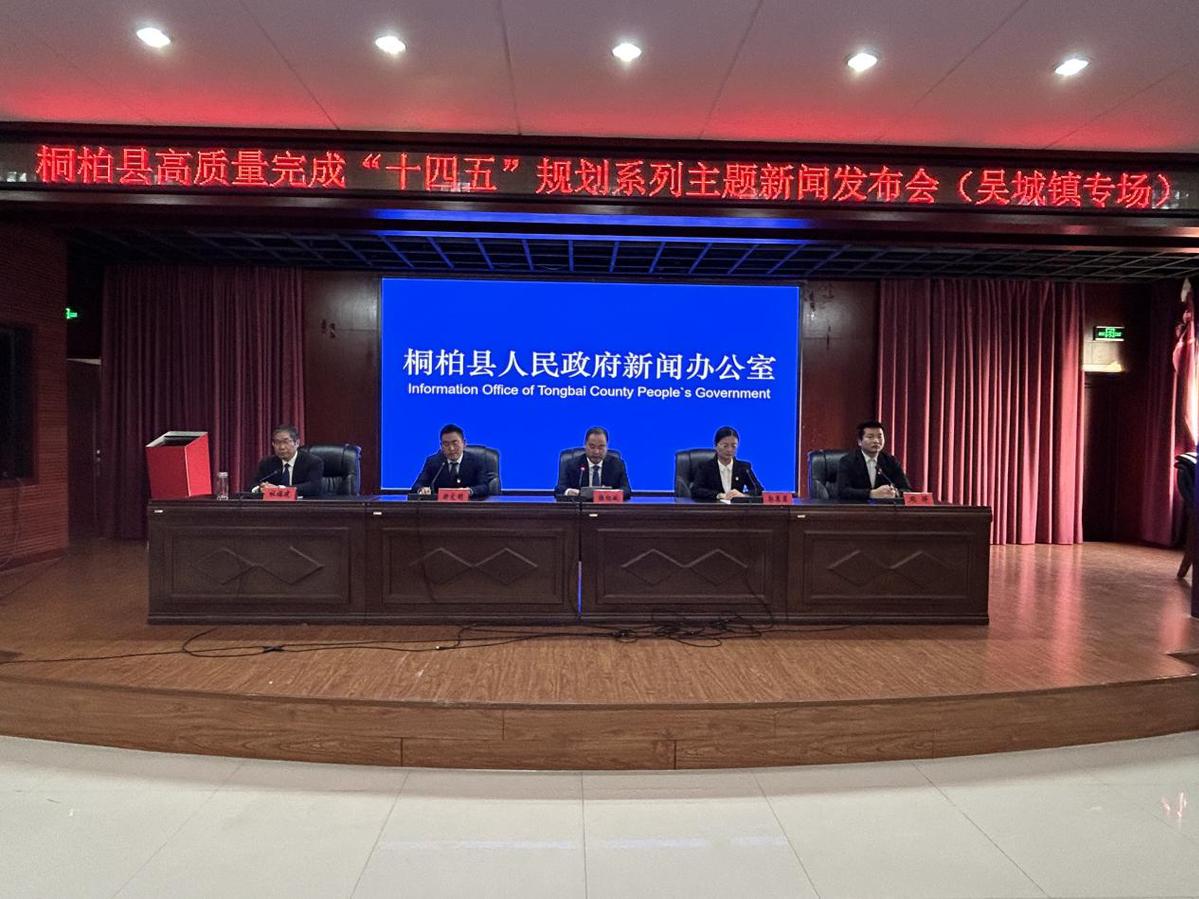 11月5日,河南省桐柏县“高质量完成‘十四五’规划”系列主题新闻发布会第八场(吴城镇专场)顺利举行。吴城镇党委书记杨相斌,党委委员、副镇长郭翠翠,党委委员、武装部长郑文明,副镇长周洋出席发布会,全面介绍该镇“十四五”时期高质量发展成就,并答记者问。发布会由桐柏县委宣传部副部长杜福建主持。