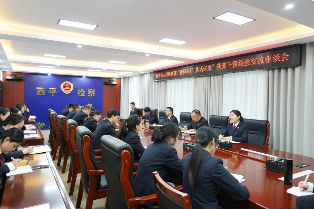 典型是引领前行的旗帜,榜样是丈量初心的标尺。为充分发挥先进典型示范引领作用,激励干警提升业务素质,11月7日,西平县人民检察院召开“榜样同行 共话未来”获奖干警经验交流座谈会,由在第三届全省检察机关公益诉讼检察业务竞赛中荣获三等奖的第四检察部副主任贾海娜同志分享参赛经验及心得体会。院党组书记、检察长郭俊主持会议并讲话,班子成员、各部门正副职、青年干警参加会议。
