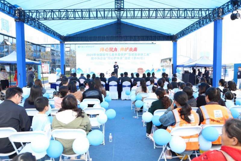 11月8日,2025年全国留守儿童关爱保护“百场宣讲进工地”暨中央企业“同心护未来”活动第46场在中建二局华中公司武汉金茂览秀城项目温情举办。
