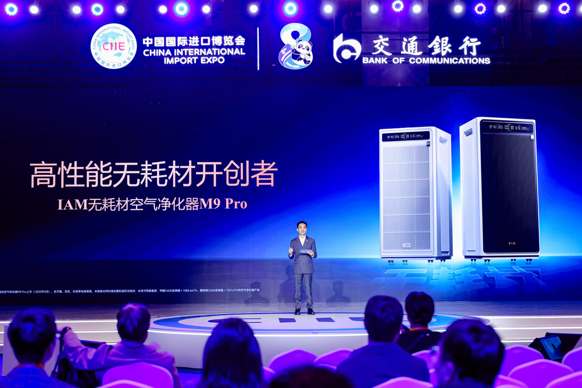 11月5日,第八届中国国际进口博览会在上海国家会展中心盛大开幕。作为全球首个以进口为主题的国家级展会,涵盖智能家电、医疗健康、高端制造等六大领域,此次参展规模再创新高。在智能家电展区,IAM以“无耗生活,智净未来”为主题,集中呈现了在无耗材技术领域的系列突破,其首发新品是IAM联合华为鸿蒙智选在空气净化器领域的又一创新力作,进一步彰显了IAM在无耗材技术路径上的持续领先。