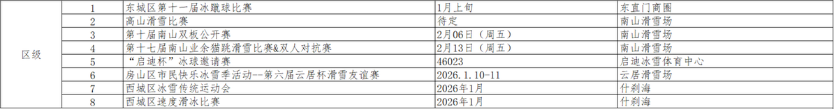 4、北京市级、区级赛事及活动(详见下表):